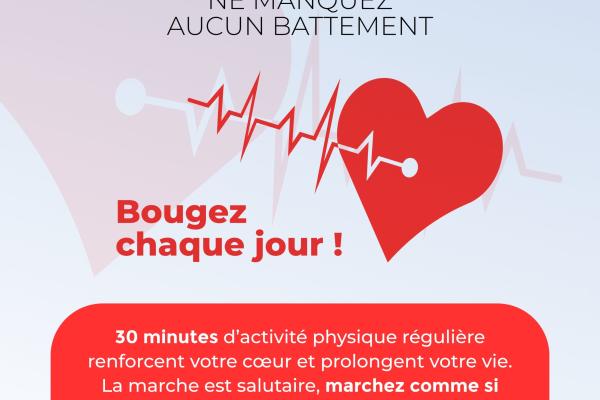 Pour en savoir plus sur les gestes simples et pratiques a mettre en place pour maintenir une bonne santé cardiaque, consultez les messages dans l’album ci-dessous que nous vous invitons à partager avec vos proches.
