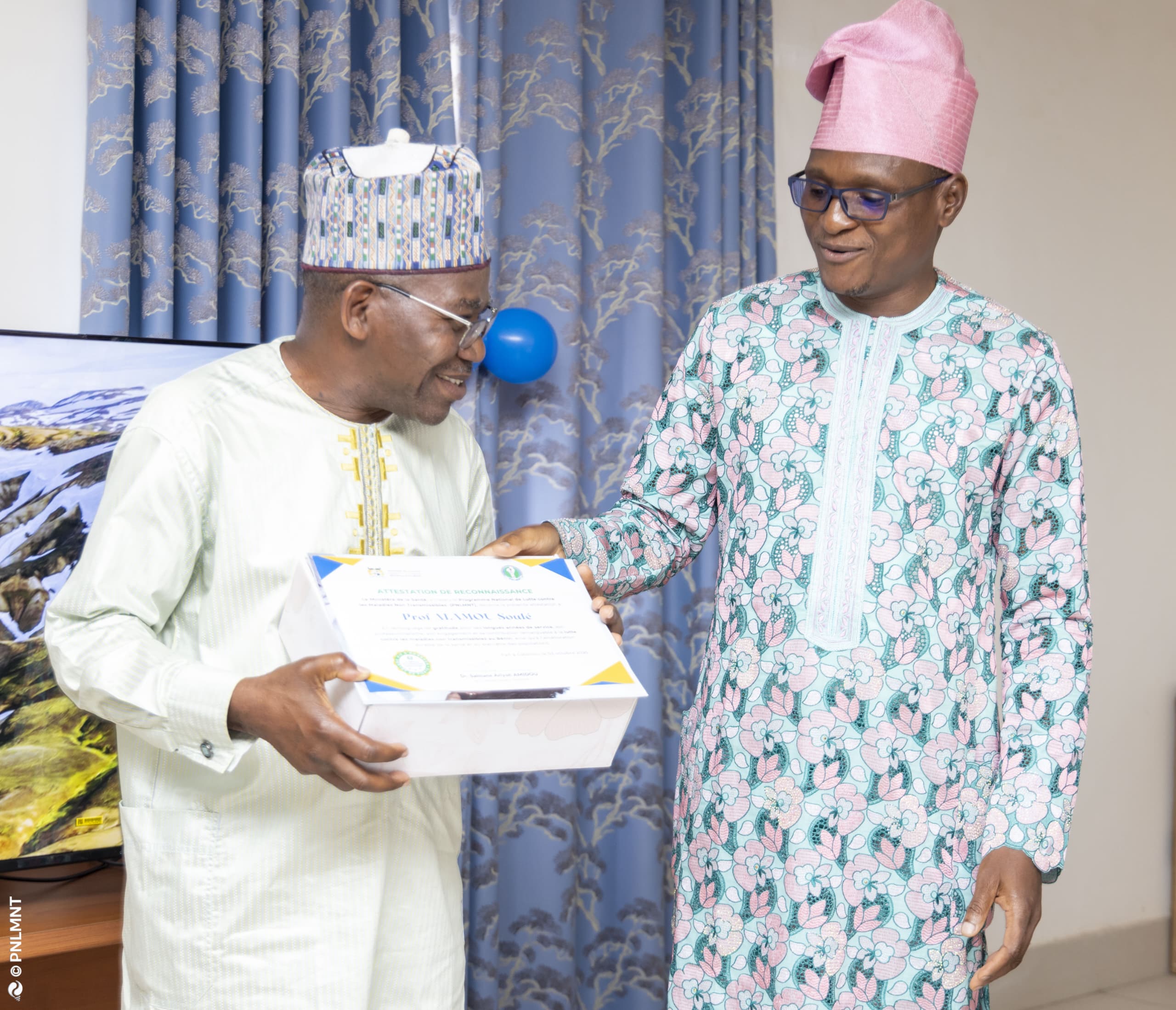 La projection vidéo diffusée lors de la cérémonie a retracé les parcours professionnels des quatre retraités, accompagnée de témoignages émouvants de leurs collègues, de souhaits de bonheur et des sages conseils des partants à ceux qui poursuivent la mission. Chacun des heureux du jour a reçu un certificat de reconnaissance de l'administration pour les loyaux services rendus à la nation, ainsi qu'un cadeau symbolique. La remise des cadeaux a été effectuée par le Président du CNMH, le Coordonnateur du PNLMNT et le Dr Simplice Tokpo, cadre du Programme.