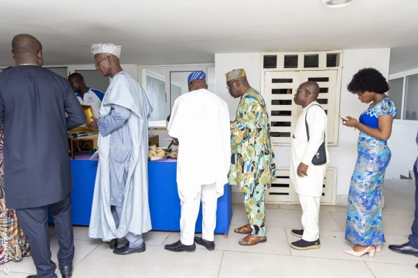 Il a ensuite remercié les membres du comité d'organisation de la cérémonie, notamment Mme Joseline KIKI et M. Cosme Toumé, relayés plus tard par Mmes Justine Dandjinou et Valérie Sessou pour leur dévouement pour la réussite de l'événement. Il a enfin dit son administration à tout le personnel qui a financé sur cotisation la cérémonie et remercié le cabinet Light Innovation qui en a accompagné l'organisation technique.