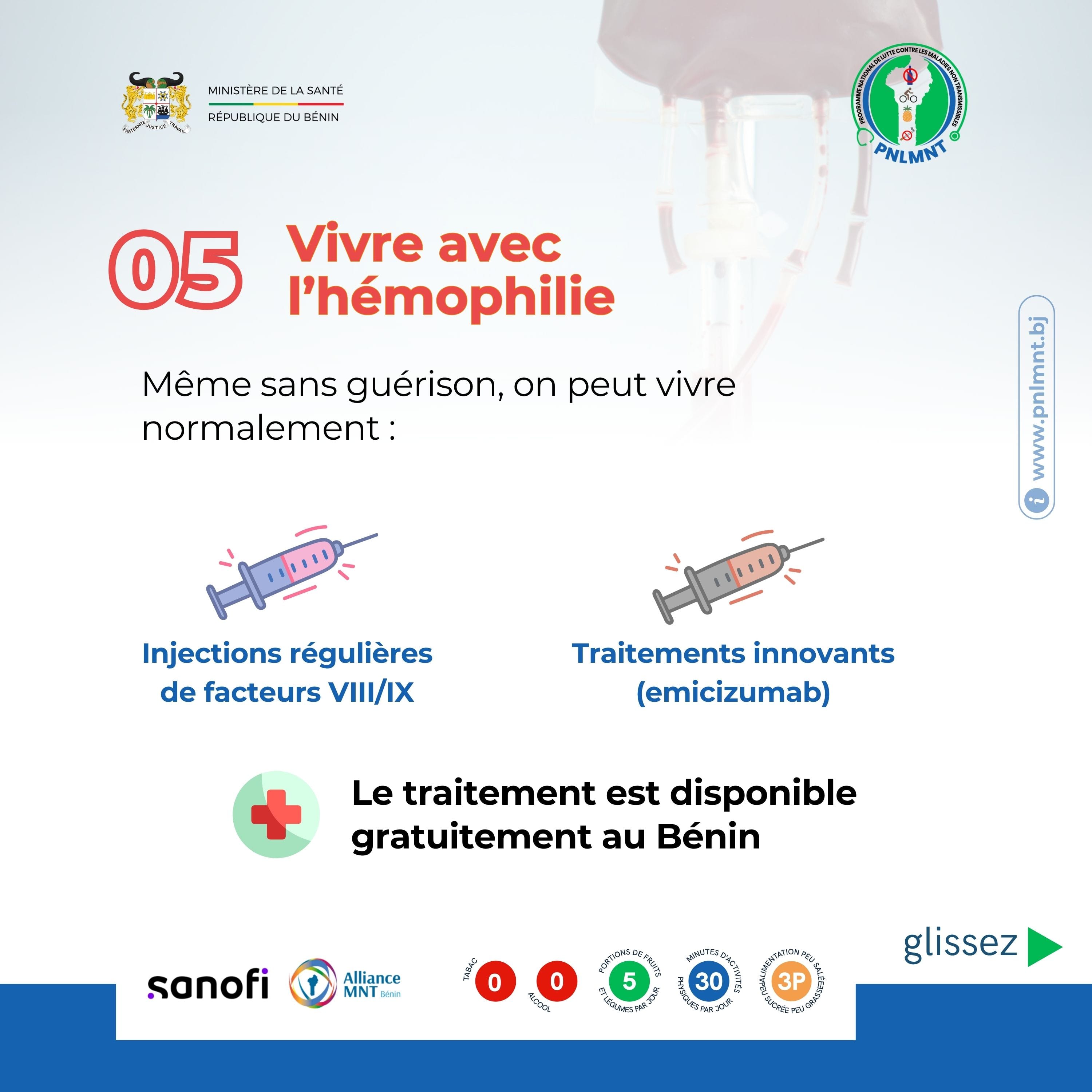 Au Bénin, l’Association Béninoise des Hémophiles (ABH) joue un rôle clé dans la lutte contre la maladie. Elle a contribué à l’introduction des premiers traitements dans le pays et œuvre, aux côtés des équipes médicales, à l’amélioration de la prise en charge ainsi qu’à la décentralisation des centres de traitement sur toute l’étendue du territoire.