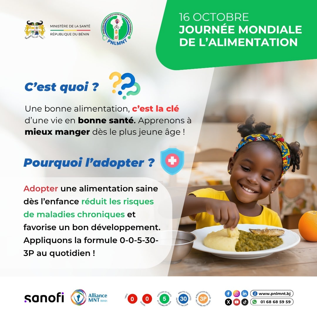À l’occasion de la Journée mondiale de l’alimentation, le Programme National de Lutte contre les Maladies Non Transmissibles (PNLMNT) rappelle la formule 0-0-5-30-3P, un guide simple pour adopter une vie saine, en insistant particulièrement sur le volet “alimentation”.