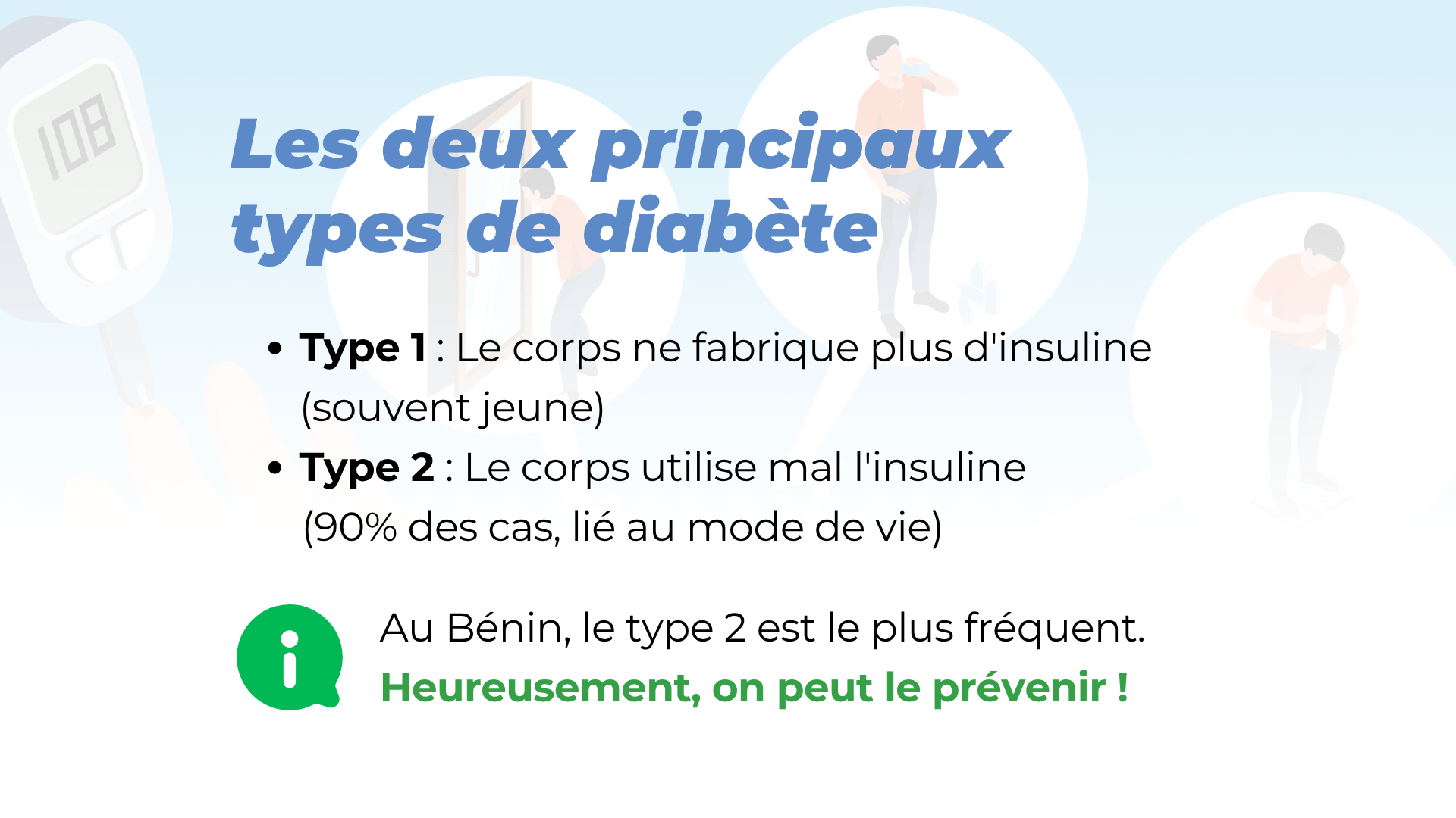 Au Bénin, le diabète de type 2 est le plus fréquent. Heureusement, il peut être prévenu grâce à une hygiène de vie adaptée et une surveillance régulière.
