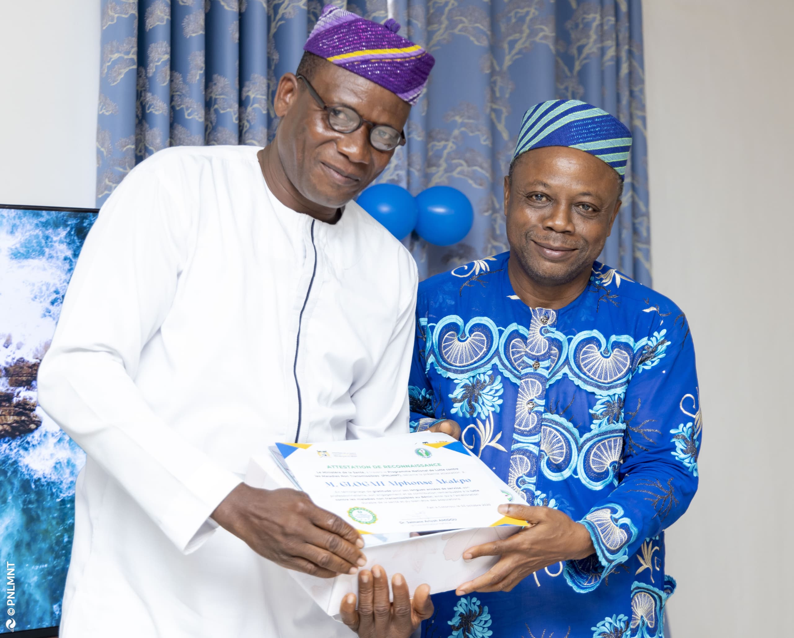 La projection vidéo diffusée lors de la cérémonie a retracé les parcours professionnels des quatre retraités, accompagnée de témoignages émouvants de leurs collègues, de souhaits de bonheur et des sages conseils des partants à ceux qui poursuivent la mission. Chacun des heureux du jour a reçu un certificat de reconnaissance de l'administration pour les loyaux services rendus à la nation, ainsi qu'un cadeau symbolique. La remise des cadeaux a été effectuée par le Président du CNMH, le Coordonnateur du PNLMNT et le Dr Simplice Tokpo, cadre du Programme.